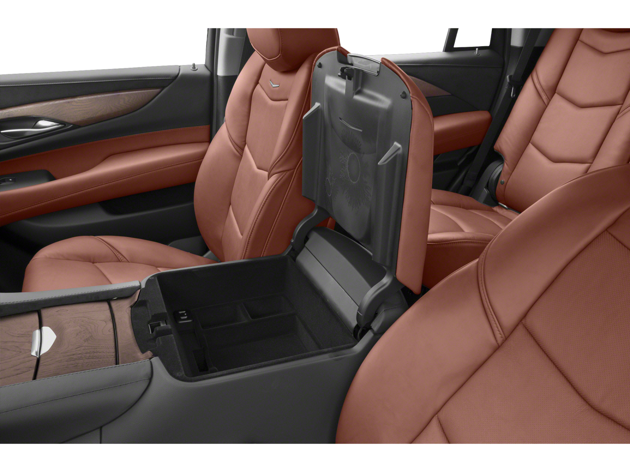 - Console, floor with covered storage, large and small storage bins, dual cup holders, electronic climate controls and second row heated seat controls (inside console: auxiliary power outlet, two USB ports and auxiliary audio port), 110-volt outlet and auxiliary power outlet on the backside of console